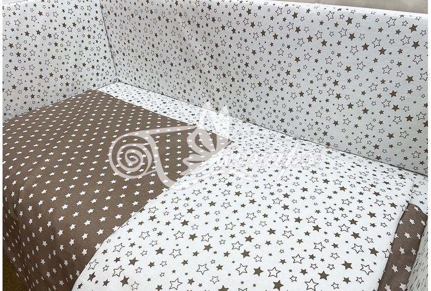 Бортики СО СЪЕМНЫМИ ЧЕХЛАМИ в кроватку: защитят Вашего малыша от ушибов, сквозняков, солнечных лучей и не дадут малышу запутаться в прутьях кроватки.