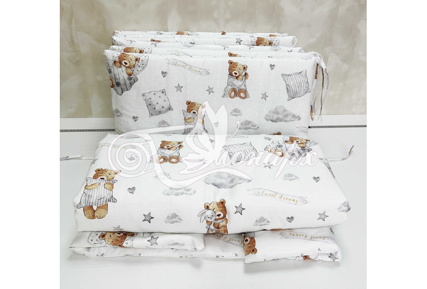 Бортики СО СЪЕМНЫМИ ЧЕХЛАМИ в кроватку: защитят Вашего малыша от ушибов, сквозняков, солнечных лучей и не дадут малышу запутаться в прутьях кроватки.