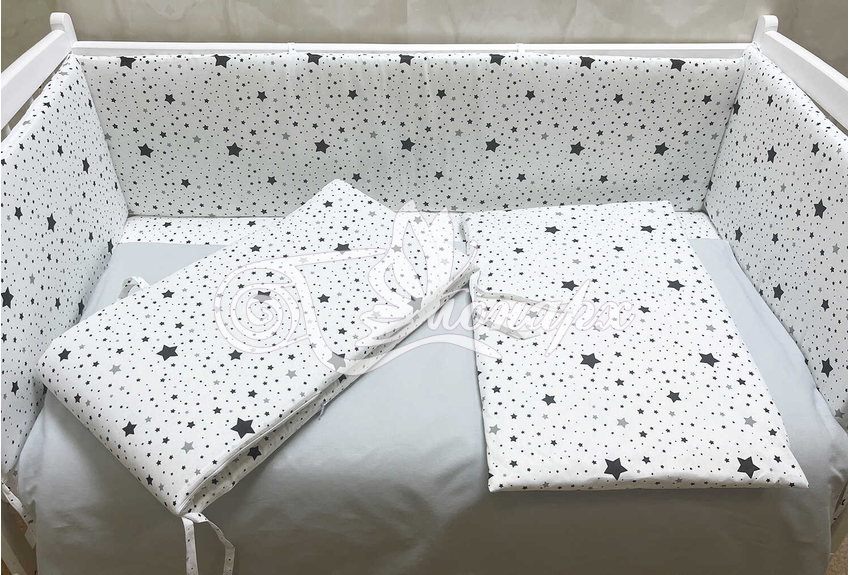Бортики СО СЪЕМНЫМИ ЧЕХЛАМИ в кроватку: защитят Вашего малыша от ушибов, сквозняков, солнечных лучей и не дадут малышу запутаться в прутьях кроватки.