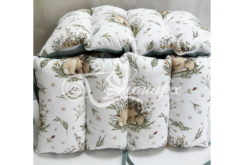 - Бортик-заборчик стеганый с синтепоном, плотно забит синтепухом (на замочках):