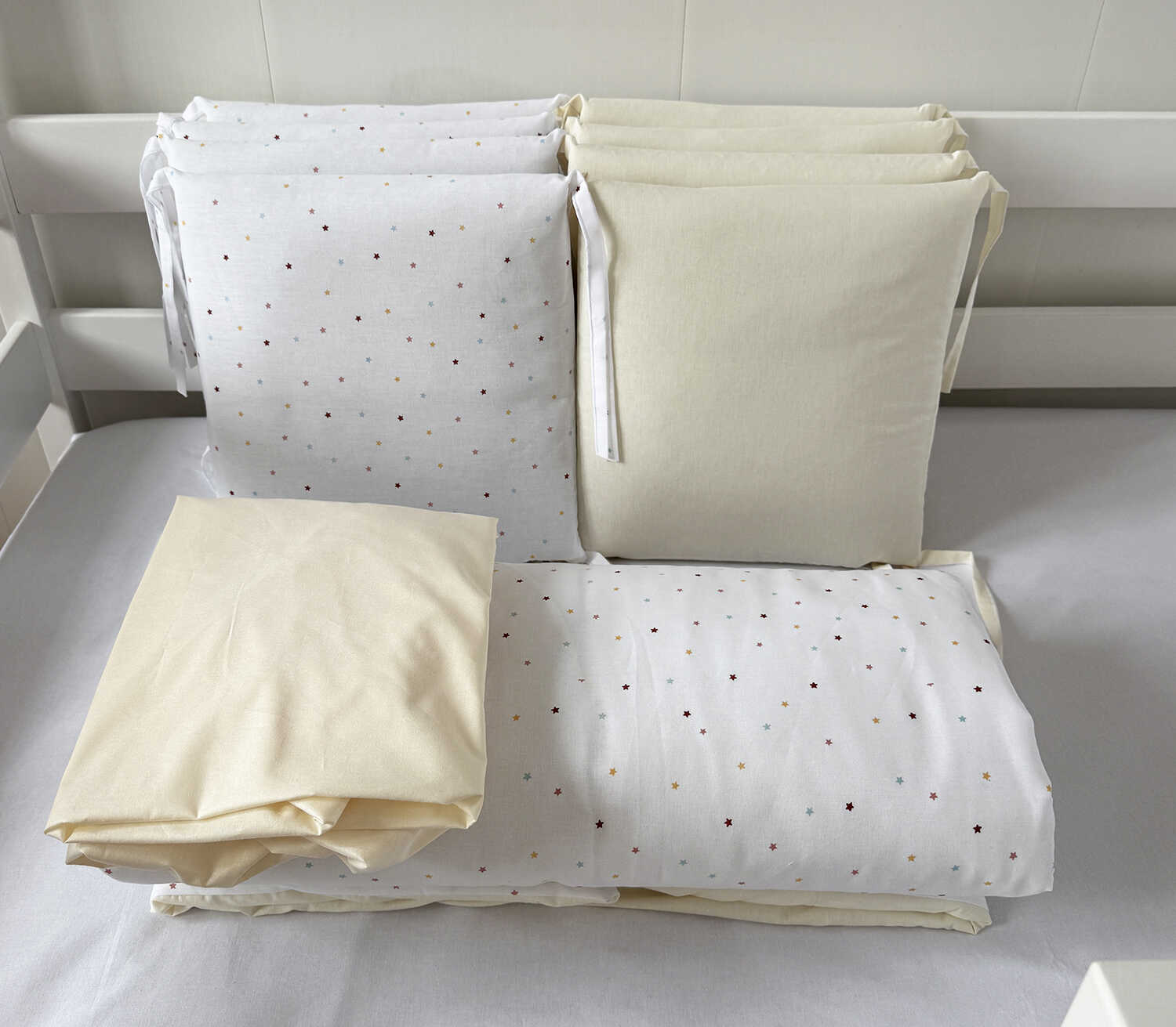 Комплекты в кроватку с бортиками, как и любые другие должны быть, в первую очередь, изготовлены из натуральных материалов. Чтобы все элементы бортика были в чехлах и могли иметь возможность для стирки и дальнейшего использования. Комплект в кроватку со съемными чехлами пользуется большей популярностью, так как это необходимо для здоровья малыша.