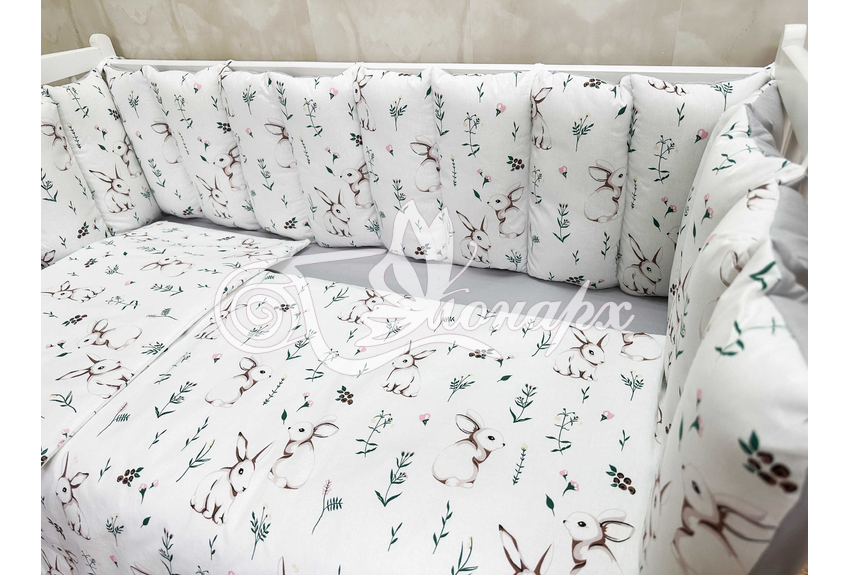 - Бортик-заборчик стеганый с синтепоном, плотно забит синтепухом (на замочках): - 2 шт. 60х34 см / - 2 шт. 120х34 см.