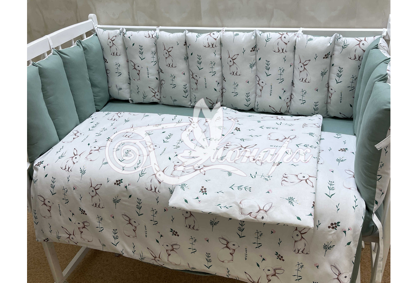 - Бортик-заборчик стеганый с синтепоном, плотно забит синтепухом (на замочках): - 2 шт. 60х34 см / - 2 шт. 120х34 см.
