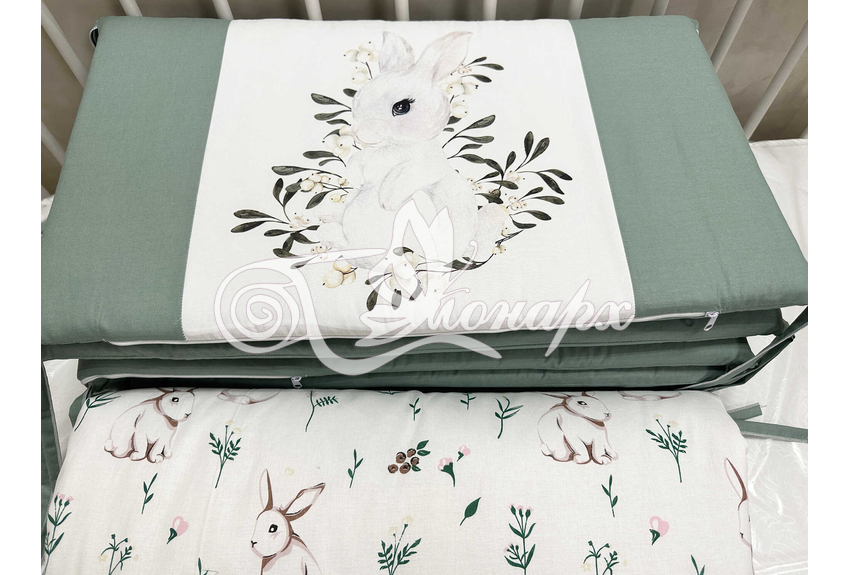 Бортики СО СЪЕМНЫМИ ЧЕХЛАМИ в кроватку: защитят Вашего малыша от ушибов, сквозняков, солнечных лучей и не дадут малышу запутаться в прутьях кроватки. - Простыня на резинке 60х120 см (подходит для стандартной кроватки)