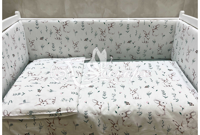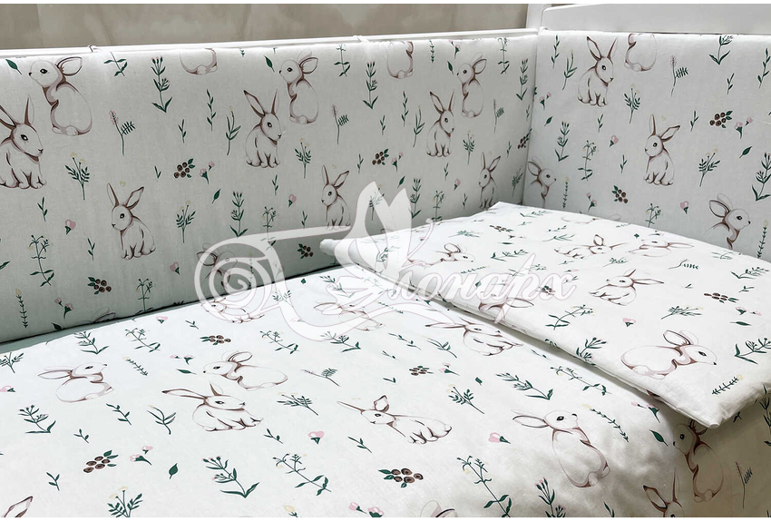 Бортики СО СЪЕМНЫМИ ЧЕХЛАМИ в кроватку: защитят Вашего малыша от ушибов, сквозняков, солнечных лучей и не дадут малышу запутаться в прутьях кроватки. - Простыня на резинке 60х120 см (подходит для стандартной кроватки)
