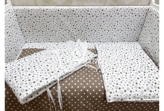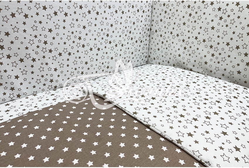 Бортики СО СЪЕМНЫМИ ЧЕХЛАМИ в кроватку: защитят Вашего малыша от ушибов, сквозняков, солнечных лучей и не дадут малышу запутаться в прутьях кроватки. - Простыня на резинке 60х120 см (подходит для стандартной кроватки)