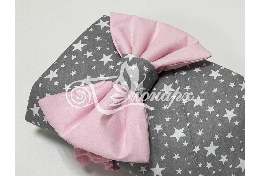 ​Конверт фиксируется поясом на резинке с бантом.