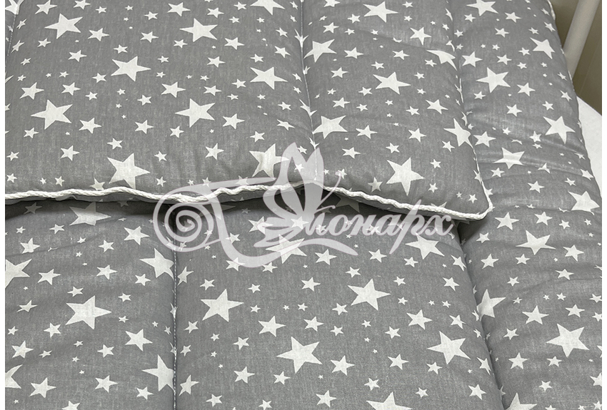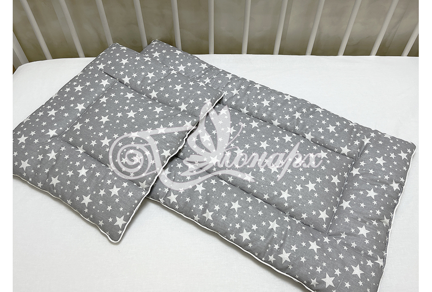 Каждое изделие из набора простегано, матрасик и подушка обработаны декоративным кантом.