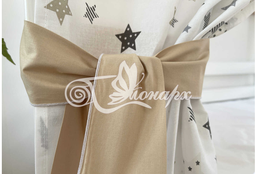 ширина - 82 см. - Занавески с завязками (по 4 завязки на каждой занавеске) на боковые стороны кроватки 2 шт.: