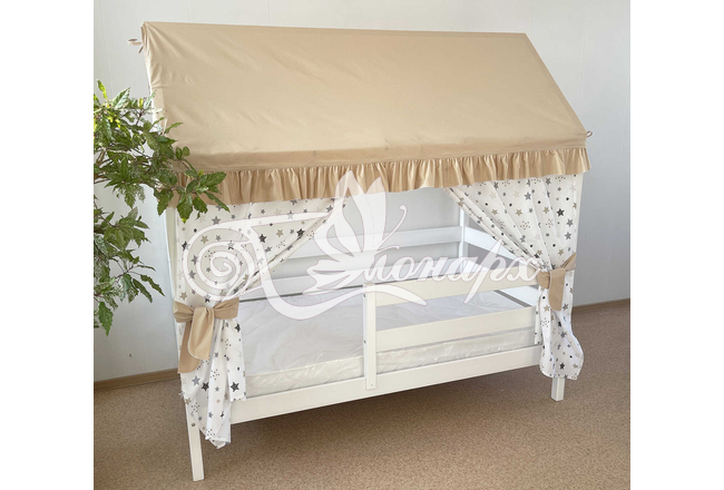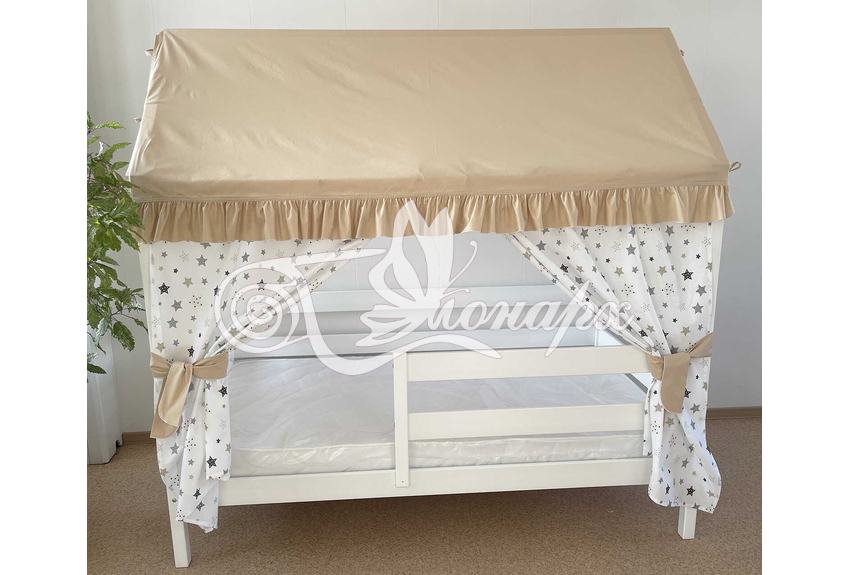 Крыша и шторы для кроватки домика ТД-13 купить в Ижевске.Теги: комплект в кроватку домик, текстиль для домика, крыша для домика