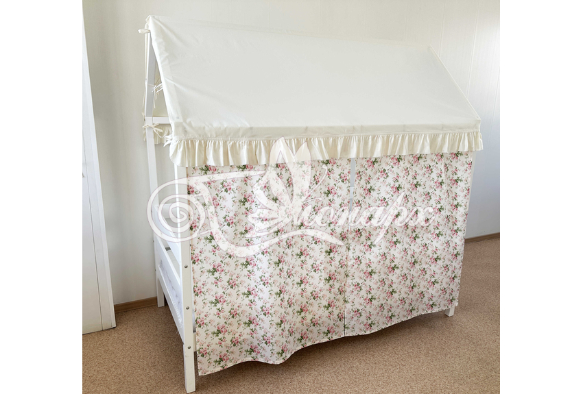Крыша и шторы для кроватки домика ТД-32 купить в Ижевске.Теги: комплект в кроватку домик, текстиль для домика, крыша для домика