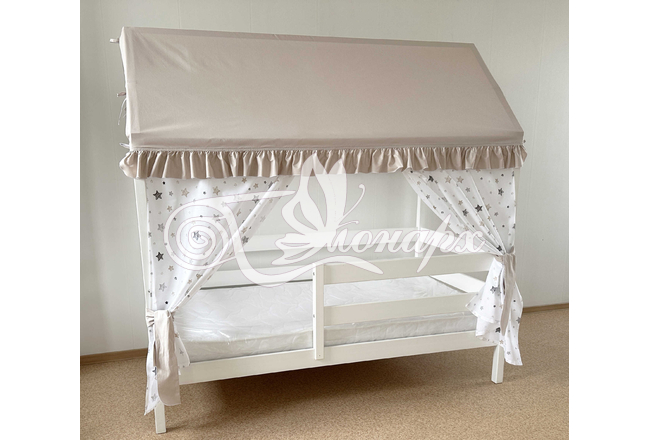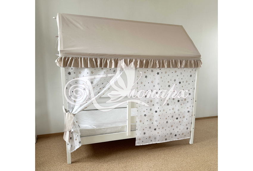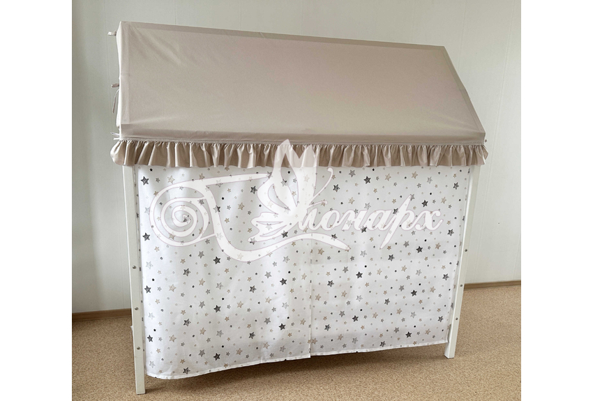 Крыша и шторы для кроватки домика ТД-36 купить в Ижевске.Теги: комплект в кроватку домик, текстиль для домика, крыша для домика