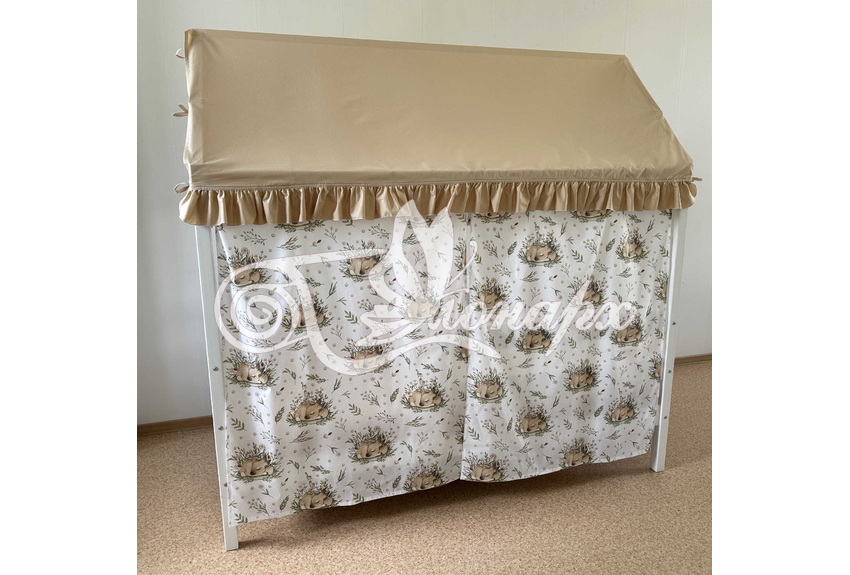 Крыша и шторы для кроватки домика ТД-41 купить в Ижевске.Теги: комплект в кроватку домик, текстиль для домика, крыша для домика