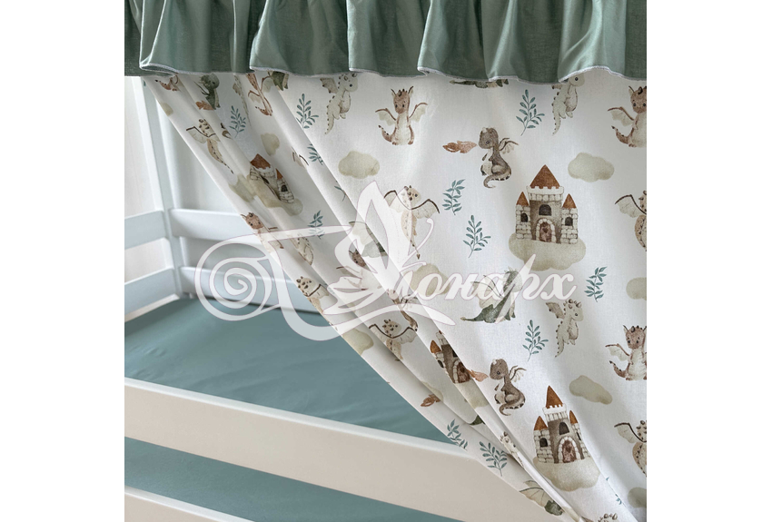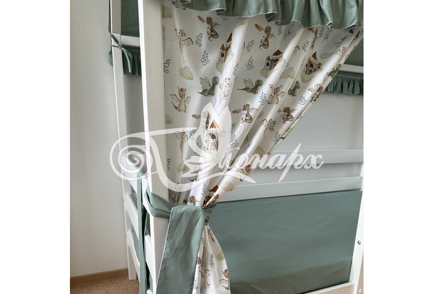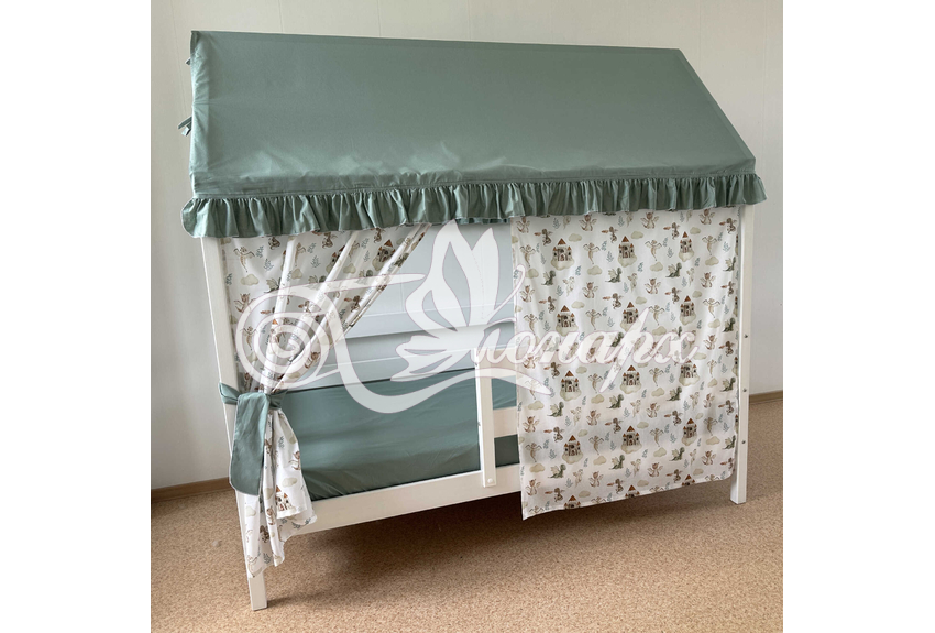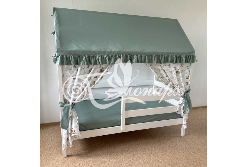 Крыша и шторы для кроватки домика ТД-47 купить в Ижевске.Теги: комплект в кроватку домик, текстиль для домика, крыша для домика