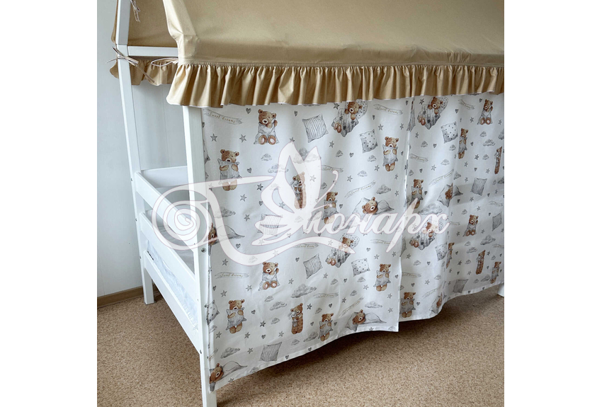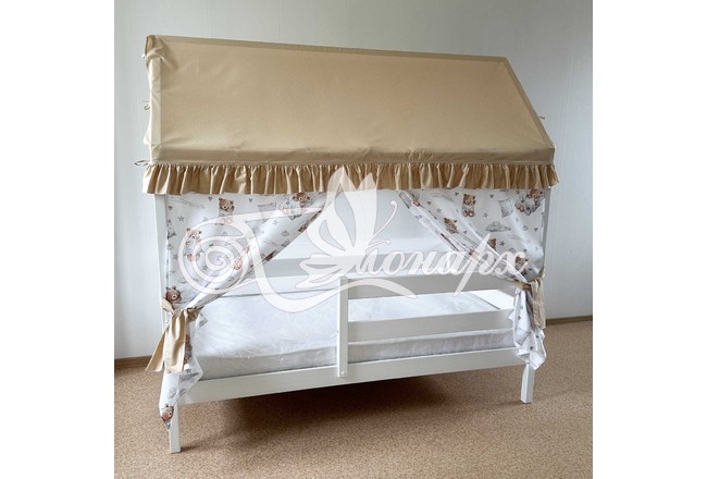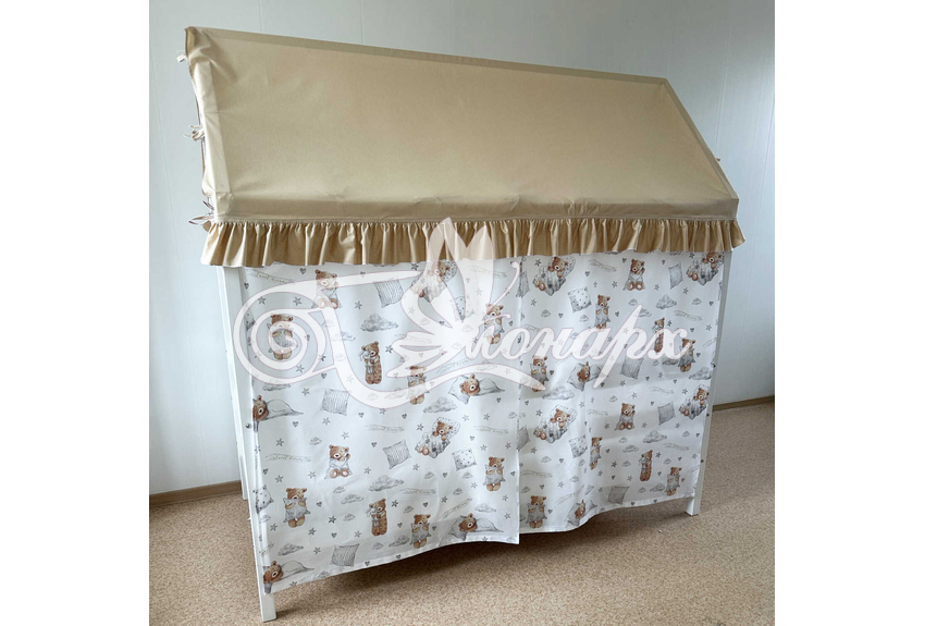 Крыша и шторы для кроватки домика ТД-51 купить в Ижевске.Теги: комплект в кроватку домик, текстиль для домика, крыша для домика