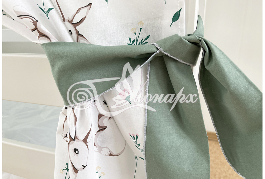 ширина - 82 см. - Занавески с завязками (по 4 завязки на каждой занавеске) на боковые стороны кроватки 2 шт.: