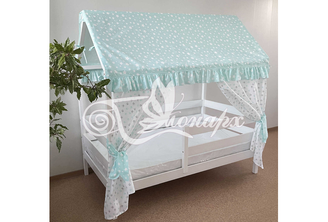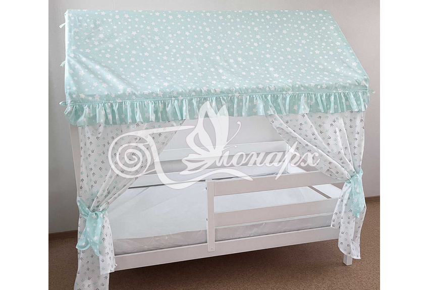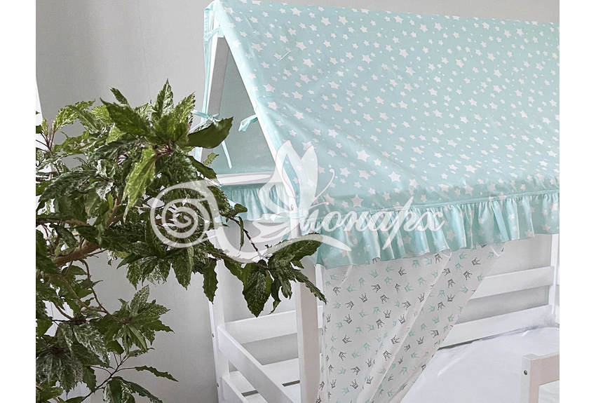 Крыша и шторы для кроватки домика ТД-8 купить в Ижевске.Теги: комплект в кроватку домик, текстиль для домика, крыша для домика