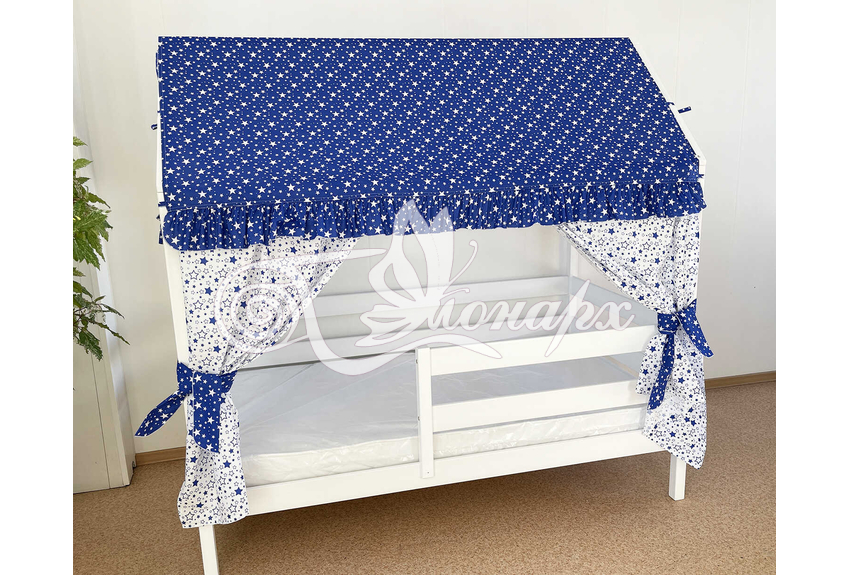 Крыша и шторы для кроватки домика ТД-9 купить в Ижевске.Теги: комплект в кроватку домик, текстиль для домика, крыша для домика